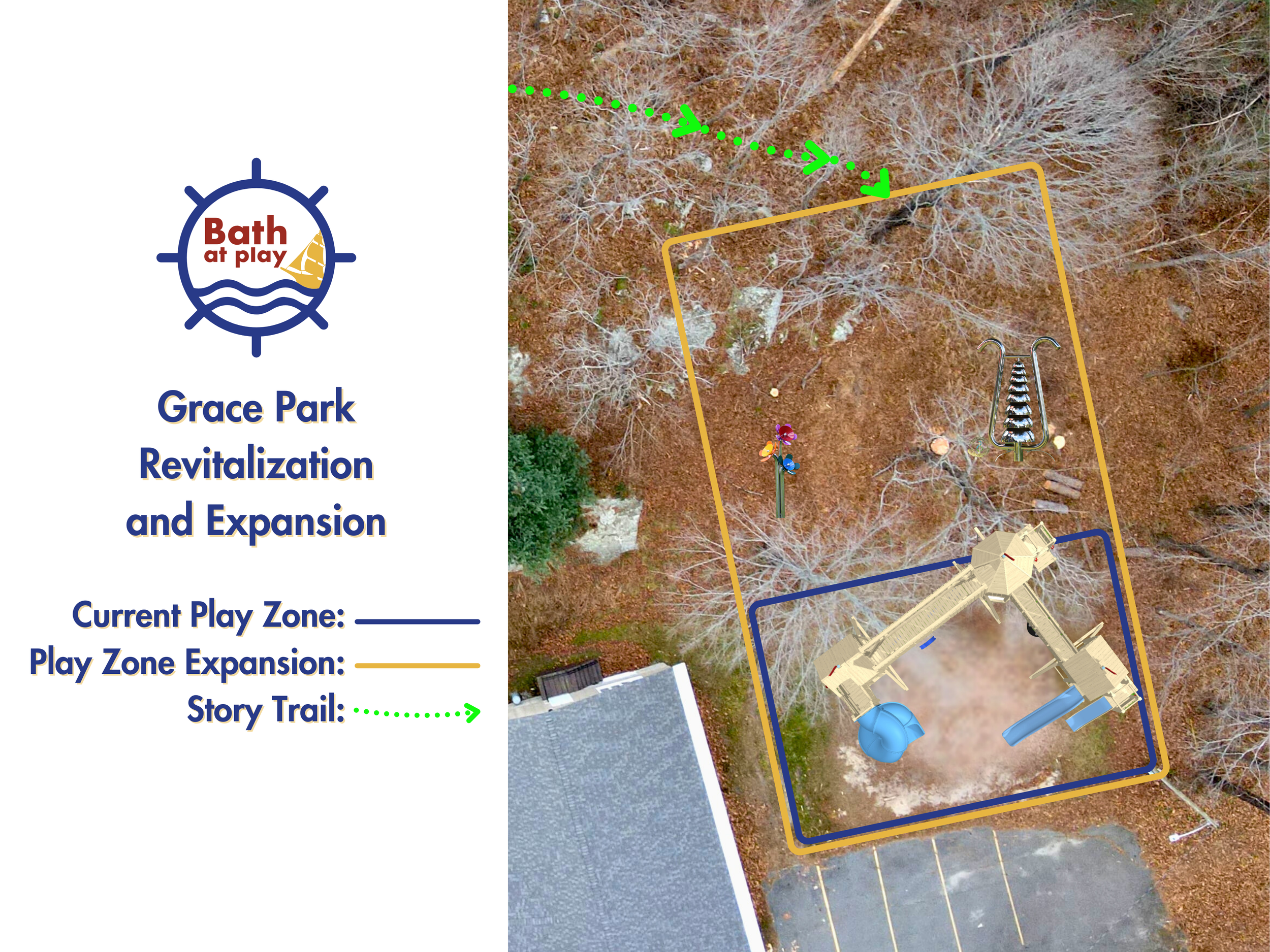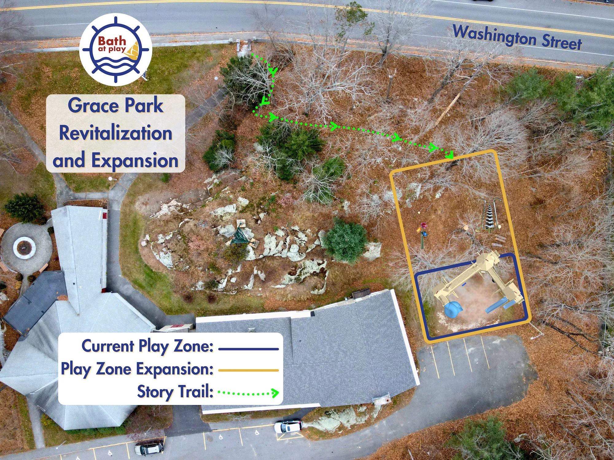 Vision and Community Alignment: The Grace Park Revitalization and Expansion project is a community-funded playground and play space improvement project located at Grace Episcopal Church. Within this project, Bath at Play aims to revitalize and expand the current play structure and play zone by reintroducing this vital amenity to the neighborhood, improving community access to the playground, and developing new play options within the current play space at Grace Episcopal Church.